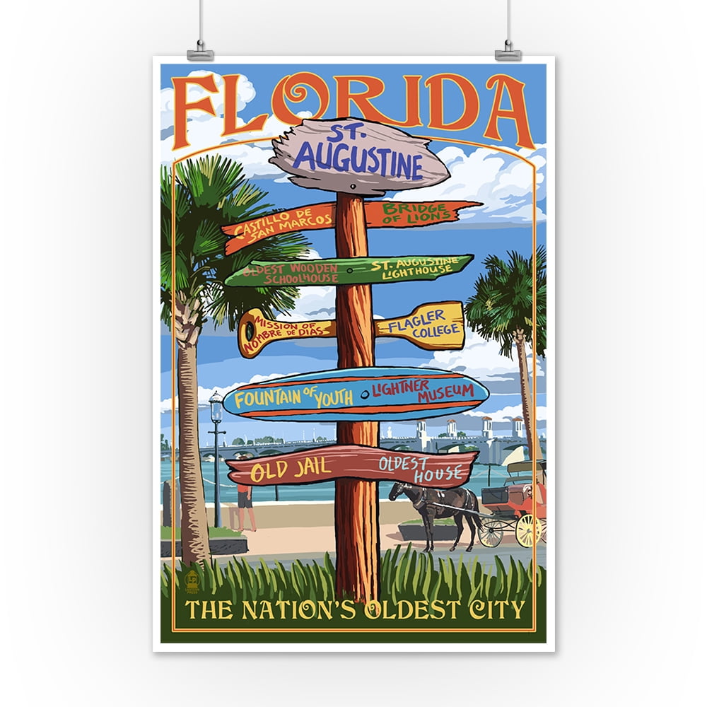 St Augustine Florida Destinations Sign Lantern Press Artwork 9x12 Art Print Wall Decor Travel Poster Walmart Com